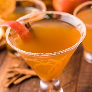 - Rub a wedge of apple or a bit of maple syrup around the rim of a martini glass. Dip and twist the rim of the glass in the cinnamon-sugar mixture to coat.