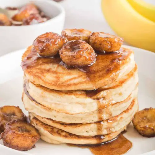 Use a sharp knife or just serve whole stacks—you’re the boss here. These pancakes are best warm so the bananas don’t cool and thicken the sauce. Add a dollop of whipped cream or a sprinkle of toasted pecans for texture or, on wild days, a scoop of vanilla Ice Cream for dessert vibes at breakfast. This dish really shines with simple, fresh extras.