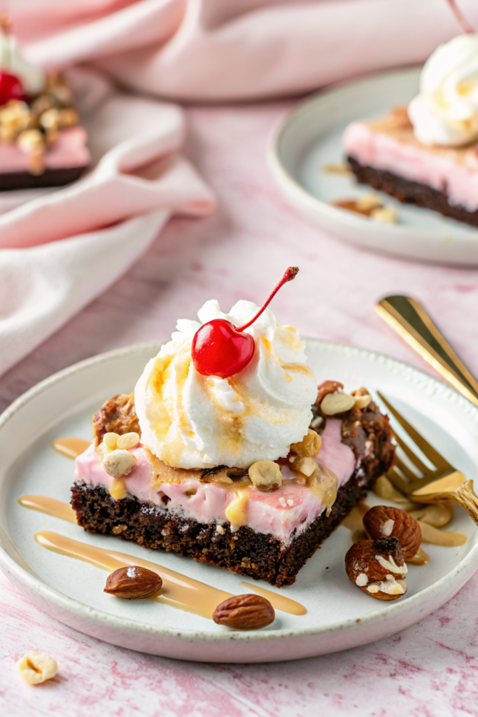 Banana split brownies are a decadent twist on classic brownies, blending rich chocolate fudge with the sweet-tangy essence of ripe bananas. At their core, these bars start with a moist, tender brownie base infused with mashed banana—giving them both structure and that unmistakable fruity warmth. Topped with a luscious strawberry cream cheese frosting that tastes like summer in a spoon, they’re finished off with optional whipped cream, crunchy walnuts, and a cherry on top. It’s like bringing your favorite childhood treat into the realm of gourmet baking—without losing any of its playful charm.