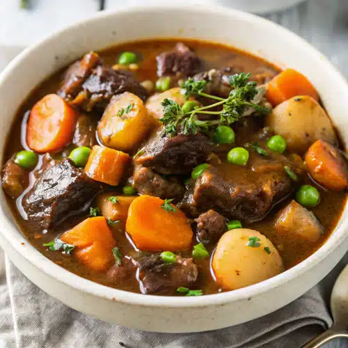 Beef stew is the ultimate cold-weather hug in a bowl—a rustic, slow-cooked dish where chunks of beef, carrots, celery, and potatoes simmer together in a deeply flavored broth until everything is tender and the sauce clings lovingly to every bite. Unlike soups, stews are thicker, heartier, and meant to be savored with a spoon (and maybe some crusty bread for dunking). At its core, it’s humble food: affordable cuts of meat transformed by time, heat, and a few well-chosen ingredients into something truly special. The magic happens during the long, gentle cook—the collagen in the beef breaks down into gelatin, making the meat fall-apart tender, while the vegetables soften and meld into the sauce. It’s not fancy, but it’s soul-warming, and when done right, it’s absolutely unforgettable.