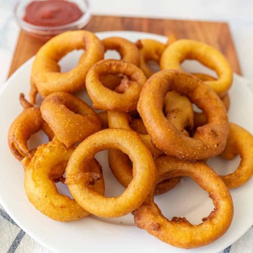 Continue frying the remaining onion rings in batches, making sure to let the oil come back up to temperature between each batch if needed. Serve your glorious homemade onion rings immediately while they are piping hot and at their absolute crispiest. They truly are best fresh out of the fryer!