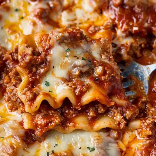 Freezer Instructions: Lasagna freezes beautifully. Wrap the pan tightly in plastic wrap, then foil, or portion into individual servings. Freeze up to 2–3 months. Thaw overnight in the fridge and reheat in the oven as above, or reheat from frozen, covered, at 350°F (175°C) for 45–60 minutes, then uncover to finish.