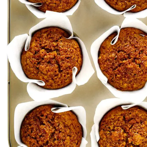 As Dessert: They’re not overly sweet, but I love pairing them with a dollop of whipped cream and a drizzle of caramel or maple syrup. A scoop of vanilla ice cream with crushed pecans on top is never wasted either—the warm muffin, cold cream, and chewy nuts are a dream together.