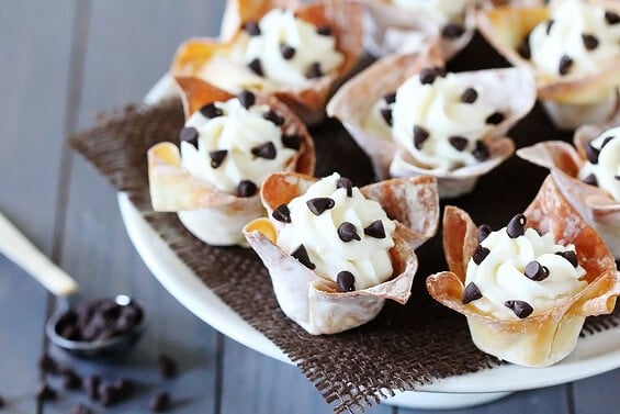- Once the cannoli cups are completely cooled, spoon or pipe the filling into them. Garnish with extra chocolate chips or a dusting of powdered sugar if desired.