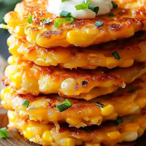 So there you have it – my absolute favorite cheesy corn fritters! I really hope you give this recipe a try. It’s the kind of dish that brings a little bit of sunshine to any meal, and it’s so incredibly satisfying to make something so delicious with such simple ingredients. The combination of sweet corn and gooey cheese, all wrapped up in a tender, slightly crisp package, is just pure comfort food magic. They’re perfect for those mornings when you want something a little special, or for those evenings when you need a quick, impressive appetizer. If you love this recipe, you might also enjoy my recipe for fluffy blueberry muffins or my easy savory cheese scones – they hit a similar comfort food note! I can’t wait to hear what you think and how your cheesy corn fritters turn out. Please leave a comment below and let me know if you tried them, and what variations you came up with! Happy baking (or should I say, fritter-making)!