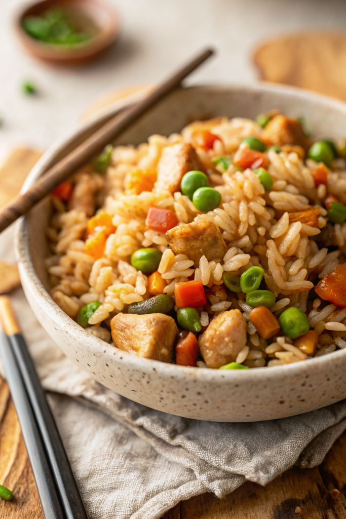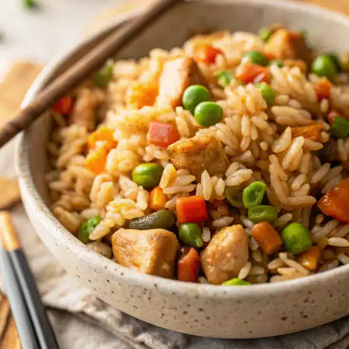 This chicken fried rice has earned its place in my weekly rotation—not just because it’s fast or flexible, but because it genuinely tastes like something you’d order from a beloved neighborhood spot. It’s the kind of recipe that turns pantry staples and leftovers into something special, and honestly, that’s what home cooking is all about. Whether you’re feeding a crowd, meal-prepping for the week, or just craving comfort food that doesn’t require a delivery app, this one delivers every time. Give it a try, and let me know how it turns out! I’d love to hear your twists—tag me @recipe_tin on Instagram. Happy cooking!