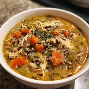 Chicken Wild Rice Soup has become a little tradition in my kitchen—the kind of dish you pull out when you want to slow down, slice through a loaf of crusty bread, and savor a bowl that smells like home. It’s not just about comfort; it’s about the small rituals that make meals feel like family. The process is forgiving, the flavors are gentle yet bold, and the leftovers have a way of tasting even better the next day. If you’re new to wild rice, you’ll quickly see why people fall in love with its bite and aroma. If you’re a seasoned home cook, you’ll appreciate how easy it is to adapt to your pantry. Either way, I’d love to hear how yours turns out—tag me in a photo, leave a comment, or share your own twists. Happy cooking, and may your bowls be steaming and your hearts full!