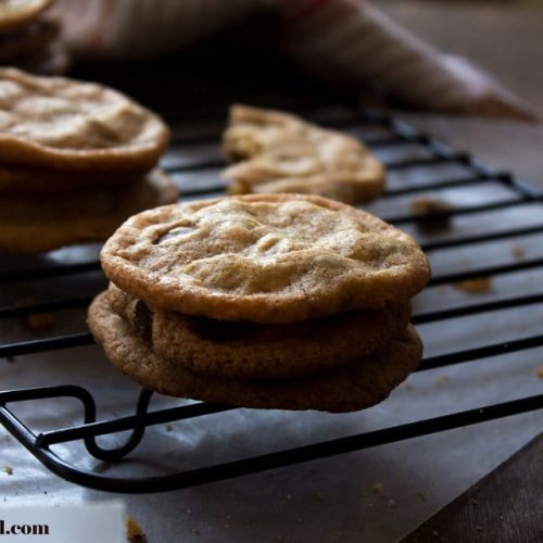 - Rap each pan on the rack 3 minutes before the cookies are done baking. This will make the cookies deflate and cracks will appear on the tops.