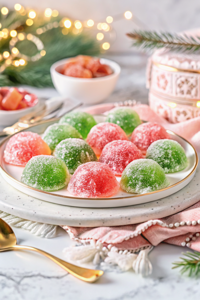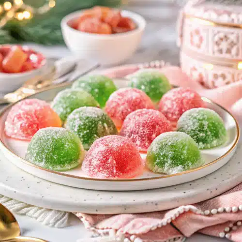 These Christmas Jello Balls pair wonderfully with warm beverages like spiced cider, eggnog, or hot chocolate. They also shine on their own as part of a dessert buffet alongside classics like peppermint bark, sugar cookies, or fruitcake. For a themed spread, arrange them in mini cups or on a mirrored cake stand so their colors pop against a dark background. And don’t forget—they make amazing gifts! Tie a bow around a jar or bag and add a handwritten label: “Sweet Holiday Cheer Inside!”