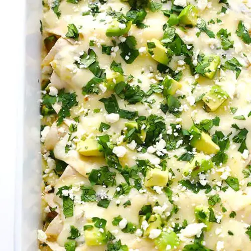 Carefully serve your Crab Avocado Enchiladas. I like to serve them right from the baking dish, scooping out portions. Garnish with fresh cilantro, a dollop of sour cream or crema, and maybe some extra sliced avocado if you’re feeling decadent. They are best served warm, right out of the oven!