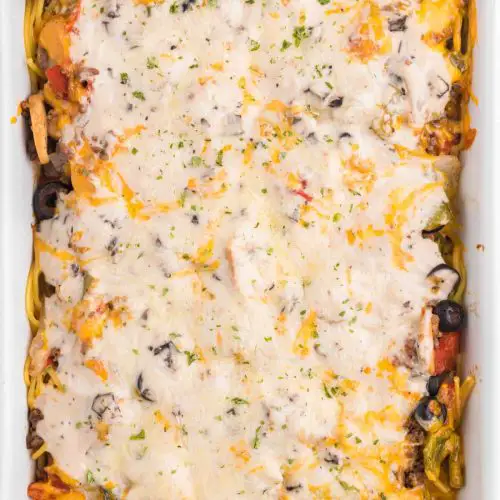 Pasta Prep: Don’t overcook your spaghetti! I always set the timer a couple of minutes ahead to keep it firm enough to absorb the sauce without getting mushy in the oven. Swapping regular spaghetti for whole wheat or gluten-free works fine, just stick to the al dente rule.