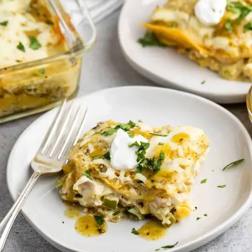 This casserole is fantastic for leftovers, and I often find it tastes even better the next day! Once it’s cooled down, you can store any remaining portions in an airtight container in the refrigerator for up to 3-4 days. I usually just cover the baking dish tightly with plastic wrap or foil if there’s still some left in the original pan. When you’re ready to reheat, you have a few options. For individual portions, you can pop a slice in the microwave for about 1-2 minutes, or until heated through. If you’re reheating a larger amount, placing the covered dish back in a 350°F (175°C) oven for about 15-20 minutes works beautifully to bring it back to that bubbly, fresh-from-the-oven state. If it seems a little dry after reheating, a small splash of water or a dollop of sour cream on top can revive it. I don’t typically recommend freezing this casserole once it’s baked, as the texture of the tortillas can get a bit mushy upon thawing. However, you *can* assemble the casserole completely (up to the baking step), wrap it tightly in plastic wrap and then foil, and freeze it for up to 2 months. Thaw it overnight in the refrigerator before baking as directed, possibly adding a few extra minutes to the bake time.