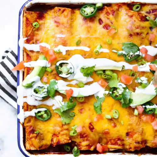 Freezer Instructions: These freeze wonderfully—wrap each enchilada in plastic wrap then aluminum foil or pop in freezer-safe containers. They stay good for up to 2 months. Thaw overnight in the fridge before reheating to keep them moist and avoid rubbery tortillas.