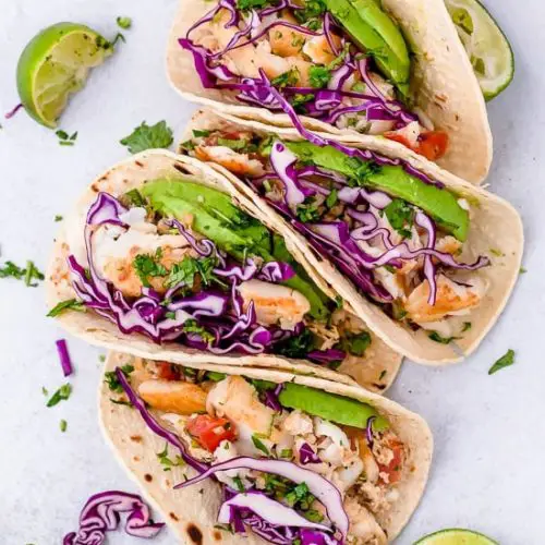 Freezer Instructions: I generally don’t recommend freezing assembled tacos or the cooked fish because the texture can really suffer. However, if you wanted to prep some of the components ahead of time and freeze them separately: the marinated fish (before cooking) can be frozen for about 1-2 months, though the lime juice might start to “cook” it slightly in the freezer, so thaw it carefully and be mindful of the marinating time before cooking. The salsa can be frozen, but the tomatoes might get a bit watery upon thawing, so it’s best for cooked applications then. For best results, fresh is always best for this recipe!