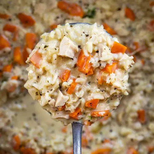 - Simmer for 20-25 minutes, or until the rice is cooked through and tender. Then, add the diced chicken and cream cheese, stirring until the cream cheese is completely melted and combined.