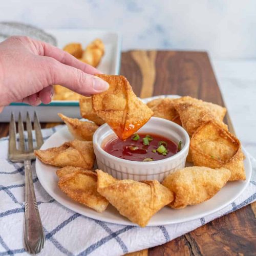 Freshness Matters: Always go for fresh wonton wrappers if you can find them — they crisp up so much better. If you must use frozen, make sure they’re fully thawed and patted dry before wrapping.