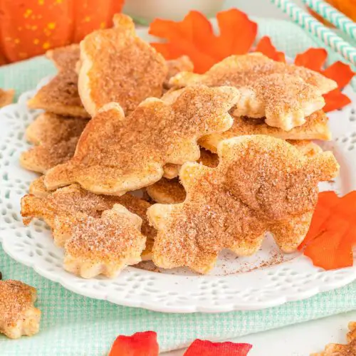 - Brush the egg wash onto the surface of each pie crust cookie. Then, sprinkle the cinnamon sugar mixture evenly over each cookie.