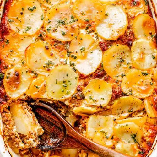 Once it’s out of the oven, resist the urge to dig in immediately! Let the potato beef bake rest for about 5-10 minutes. This allows the filling to set slightly, making it easier to slice and serve. If you added cheese, this brief rest will also help it cool down a bit so you don’t burn your tongue!