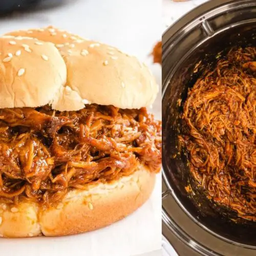 This slow cooker BBQ chicken is unbelievably versatile, and honestly, it’s fantastic in so many different ways. For a classic breakfast, I love to shred some of this chicken and add it to scrambled eggs or an omelet – it gives them a smoky, savory kick that’s a welcome change from plain eggs. My family also enjoys it as a hearty breakfast hash served with roasted potatoes and a dollop of sour cream. For brunch, it’s amazing piled high on fluffy buttermilk biscuits or incorporated into a savory breakfast casserole. Think of it as a flavorful protein boost! As a main course for dinner, the options are endless. You can pile it onto toasted hamburger buns with coleslaw for epic BBQ chicken sandwiches. It’s also incredible served over fluffy white rice, creamy mashed potatoes, or alongside a baked potato. I also love to serve it with classic BBQ sides like corn on the cob, baked beans, and macaroni salad. For a lighter meal, serve it with a big fresh green salad and some grilled corn. And if you’re just looking for a comforting, satisfying snack, a bowl of this shredded chicken, perhaps with a little extra sauce drizzled on top, is pure bliss on a chilly evening. My kids especially love it served with sweet potato fries!