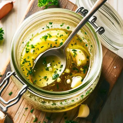 This garlic butter sauce recipe is best served fresh, as the emulsion can break down over time. However, if you find yourself with leftovers (which is rare in my house!), it’s pretty easy to store. Let the sauce cool completely. Once cool, transfer it to an airtight container. It will keep in the refrigerator for about 2-3 days. The butter will solidify, and the sauce will separate a bit when it’s cold, but don’t worry, it’s fixable!