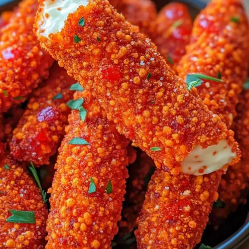 So there you have it! My go-to recipe for Hot Cheeto Mozzarella Sticks. I really hope you give these a try, because they are honestly a revelation. They take a beloved classic and inject it with so much fun, flavor, and that irresistible crunch that everyone goes crazy for. They’re perfect for when you want something a little different, something that’s guaranteed to impress without keeping you in the kitchen all day. The combination of gooey, melty cheese with that spicy, cheesy, crunchy Hot Cheeto coating is just pure magic. It’s the kind of snack that brings people together and always leads to happy sighs and requests for seconds. If you’re a fan of fried mozzarella or just love a good spicy snack, you absolutely have to make these. They’re easy enough for a weeknight treat but special enough for any party or game day spread. You might also enjoy my recipe for Loaded Nachos or my Spicy Buffalo Chicken Dip if you’re looking for other crowd-pleasing appetizers. Give these Hot Cheeto Mozzarella Sticks a whirl, and please, please let me know how yours turn out! I love hearing about your kitchen adventures and seeing your creations. Happy snacking, and I can’t wait to hear all about it!