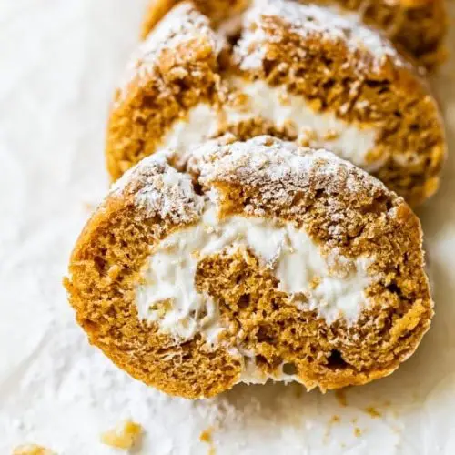 Freezer Instructions: Yes, you can absolutely freeze this lightened pumpkin roll! It’s a great make-ahead option. I usually like to freeze it unfrosted, or with just a dusting of powdered sugar. Wrap the completely cooled and unfrosted roll tightly in a layer of plastic wrap, followed by a layer of aluminum foil, or place it in a freezer-safe bag or container. It will keep well in the freezer for up to 2-3 months. To thaw, unwrap it and place it in the refrigerator overnight, then bring it to room temperature before frosting or serving.