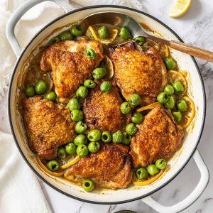 This Mediterranean braised chicken is best served hot. You can serve it directly from the pot, or plate it up attractively. Spoon plenty of that rich, flavorful sauce over the chicken. It’s absolutely divine served over fluffy couscous, rice pilaf, or with some crusty bread to soak up every last drop. Garnish with a little fresh parsley or more lemon zest if you like!