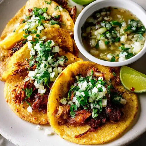 My favorite way to serve Mexican carnitas is to keep it simple and let the pork shine. A bright salsa, some fresh cilantro, and a warm tortilla will do most of the heavy lifting for you. If you want to switch things up, try topping with a quick jalapeño-lime crema or a smoky chipotle sauce for an extra layer of depth. No matter how you present it, the dish remains a friendly, crowd-pleasing classic that’s always a hit during gatherings or weeknight dinners alike.