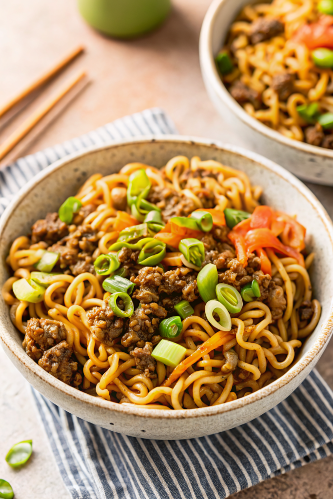 If you’re looking for a quick, flavorful meal that doesn’t skimp on nutrition, this dish delivers every time. The combination of protein-rich ground beef, fiber-filled veggies, and complex carbs from the noodles creates a balanced plate that keeps you full longer. Plus, the umami-packed sauce gives it depth you won’t get from store-bought ramen. And let’s be honest—cleaning up after a one-pot meal feels like a win no matter what! Whether you’re cooking for picky eaters, meal prepping, or just craving something warm and cozy, these noodles hit all the right notes. My kids actually call it “special ramen” because it tastes so much better than the kind from a package.