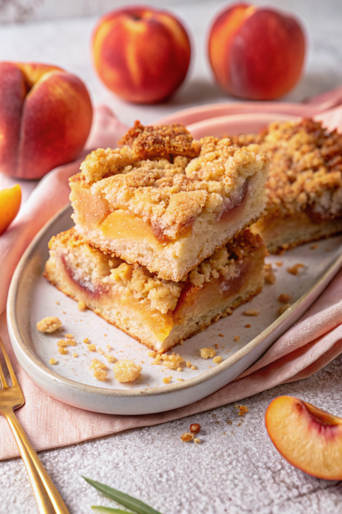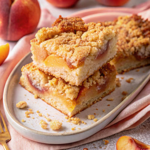 This isn’t your average coffee cake—not by a long shot. It’s a moist, buttery cake studded with fresh diced peaches and crowned with a crunchy, caramelized brown sugar topping that cracks satisfyingly under your teeth. Think of it as a cross between a cobbler and a loaf cake, baked into an 8-inch square pan so everyone gets their fair share (which they do—no leftovers here). The peaches add natural sweetness and juiciness without turning the cake soggy, thanks to being lightly tossed with flour and cinnamon before folding into the batter. It bakes up dense and rich, perfect for slicing thick and serving with a cup of tea or morning coffee. This recipe was inspired by my all-time favorite blueberry version, but I’ll tell you: once you try peaches in this cake, there’s no going back.