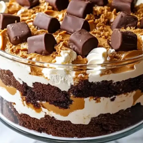Now for the fun part – assembly! Cut your cooled brownies into bite-sized cubes. Grab your beautiful glass trifle bowl. Start with a layer of brownie cubes at the bottom. Spoon about half of the peanut butter mousse over the brownies, spreading it gently. Next, add a layer of the chocolate pudding or ganache. Sprinkle about half of the chopped peanut butter cups over the chocolate layer. Repeat with another layer of brownie cubes, the remaining peanut butter mousse, the remaining chocolate layer, and finally, top with the rest of the chopped peanut butter cups. If you’re feeling fancy, you can even reserve a few whole peanut butter cups for the very top!