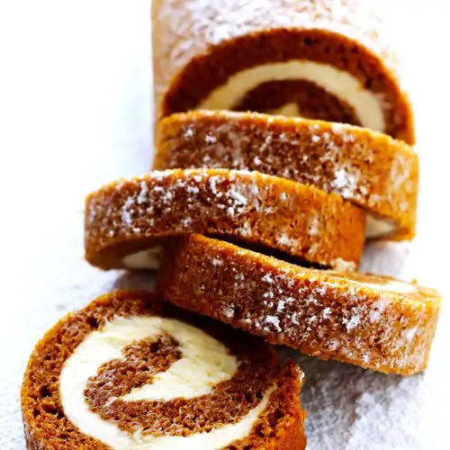 Refrigerator Storage: The pumpkin roll keeps beautifully in the fridge for 3–5 days. Keep it wrapped tightly or stored in an airtight container to prevent it from drying out or absorbing fridge odors. Slicing just before serving helps retain moisture and keeps the cut clean.