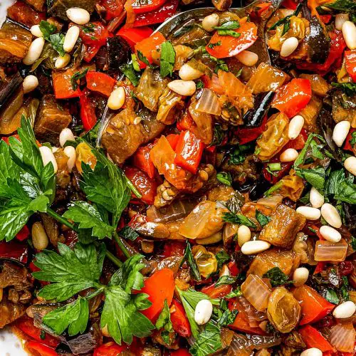 Room Temperature: If you’re serving it within a few hours, Caponata is absolutely lovely at room temperature. Just cover it loosely with plastic wrap or a lid. It’s best to consume it within 2-3 hours if left out on the counter. After that, it should really go into the fridge to maintain its freshness and safety.
