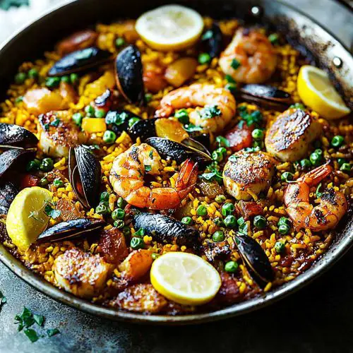 There’s something magical about the first bite of Spanish Paella—the way saffron makes the rice glow, the crisp edges that crackle with flavor, and the gentle kiss of seafood or chicken that tastes like a sunny afternoon by the coast. I grew up with a version my family called “the Sunday pan,” a dish that filled the kitchen with garlic, lemon, and a thread of smoke from the socarrat on the bottom. It’s incredible how a single skillet can feed a crowd and still feel special enough for a quiet weeknight, especially when you’re cooking for someone you love. This Spanish Paella is my go-to for gatherings, but it’s also my lifesaver on busy nights—one pan, lots of flavor, minimal fuss. It’s got the warmth of a family hug and the bright, sunlit charm of a summer market. I’ve tweaked it over the years, and the version here is forgiving, flexible, and deeply comforting. You’ll notice I’m not shy about a few personal tweaks—almond milk for creaminess, extra lemon for brightness, and a careful hand with saffron to keep things balanced. Make yourself a cuppa, and let’s get this pan singing. Spanish Paella is more than a meal; it’s a shared moment.