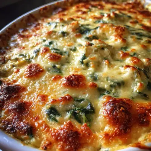Over the years, I’ve learned a few tricks that make this spinach artichoke dip recipe absolutely foolproof. So, let’s talk about getting it just right. First, the spinach prep is *so* important. I can’t stress enough how vital it is to squeeze out as much moisture as humanly possible. I’ve had batches that were a little too wet, and it definitely affects the final consistency. So, really wring that spinach out, or even give it a good press in a clean tea towel. When it comes to mixing, the key is gentle incorporation. You don’t want to overmix the spinach and artichoke hearts into the cheese base. Think of it as folding them in, trying to keep some of that lovely texture intact. It should look chunky and delicious, not like a uniform paste. For swirl customization, well, there isn’t really a “swirl” in this specific recipe, but if you wanted to add a dollop of pesto or sun-dried tomato paste on top before baking, you could certainly swirl that in for a visual pop and extra flavor! When it comes to ingredient swaps, I’ve experimented a bit. If you’re dairy-free, you can try using vegan cream cheese and a plant-based sour cream or even thick Greek-style yogurt, though the texture might be a little different. Some people swap out the mozzarella for provolone for a sharper flavor, which is lovely! For baking, I always recommend keeping an eye on it. Ovens can vary, so the 20-25 minute mark is a guideline. You’re looking for that bubbly, golden-brown perfection. If your oven tends to cook hot, you might want to cover it with foil for the first 15 minutes to prevent the top from burning before the center is heated through. And finally, glaze variations? While the Parmesan on top is classic and wonderful, I sometimes like to add a sprinkle of red pepper flakes for a little heat, or even some chopped fresh chives or parsley right before serving for a burst of freshness. These little tweaks can elevate it even further, making it uniquely yours!