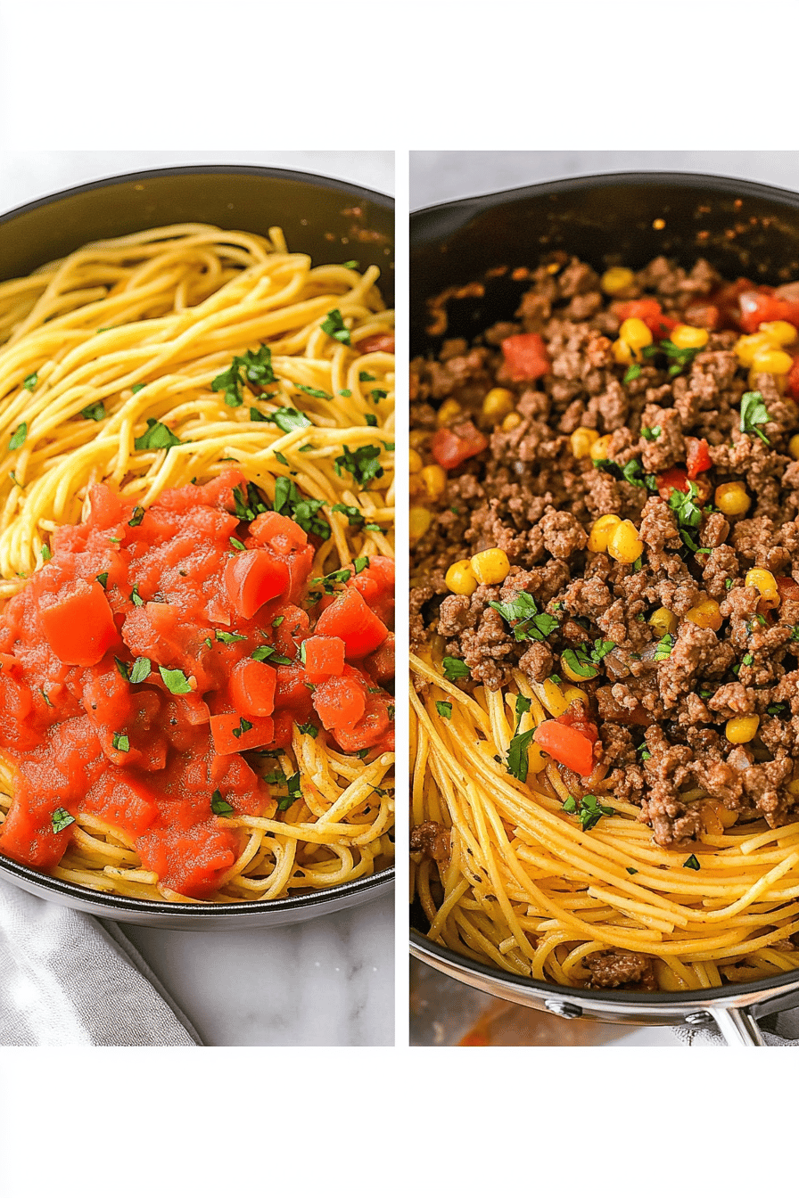 Honestly, where do I even begin? There are just so many reasons to adore this recipe. First and foremost, the flavor is incredible! The combination of the rich, savory meat sauce with the zesty taco seasoning is just divine. It’s a flavor explosion in every bite. Then there’s the simplicity. This recipe comes together in under 30 minutes, making it perfect for busy weeknights. You basically brown some meat, add some spices, simmer with tomatoes, and toss it all with spaghetti. It’s so easy, even my husband can make it (and that’s saying something!). What I love most about this Taco Spaghetti is how cost-efficient it is. You probably already have most of the ingredients in your pantry. Ground beef is usually pretty budget-friendly, and pasta is always a staple. Plus, you can stretch the recipe even further by adding beans or extra veggies. Speaking of versatility, this dish is incredibly adaptable. You can use ground turkey or chicken instead of beef, add black beans or corn for extra texture, and swap out the toppings for whatever you have on hand. This one is even more of a crowd pleaser than my classic chili recipe!